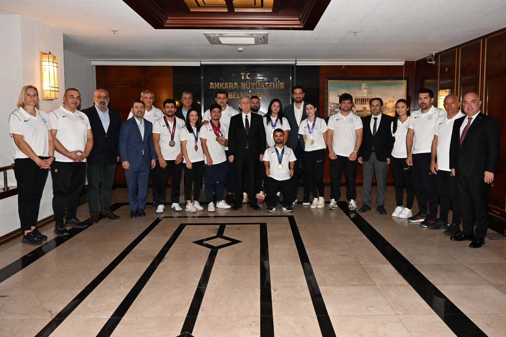 Ankara Büyükşehir Belediye Başkanı Mansur Yavaş, uluslararası arenada madalya kazanan ABB ASKİ Spor sporcuları ile bir araya geldi.