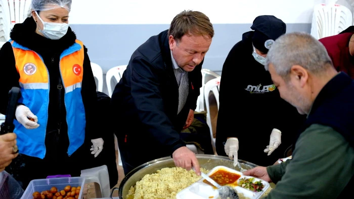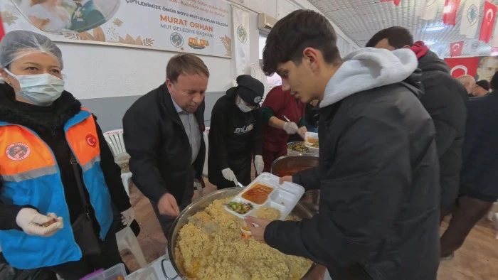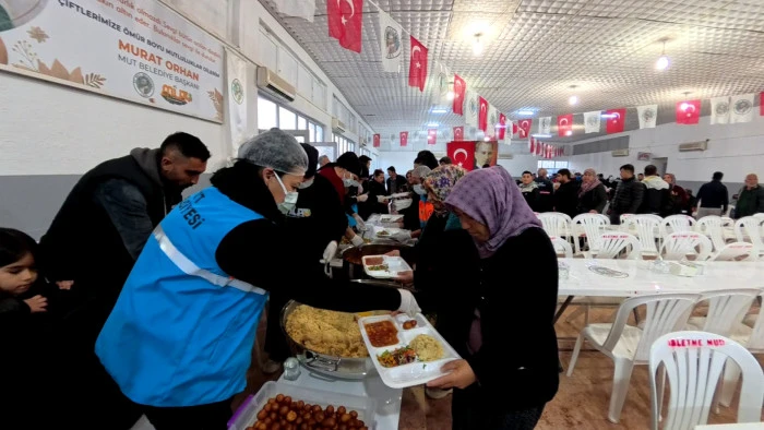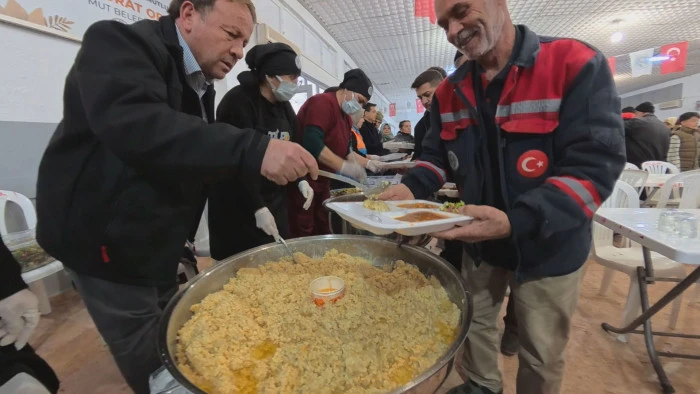 Mut Belediyesi’nin düzenlediği Ramazan ayının ilk iftar programında Başkan Murat Orhan, kazan başına geçerek vatandaşlara yemek ikram etti; birlik, beraberlik ve bereket vurgusu yaptı.