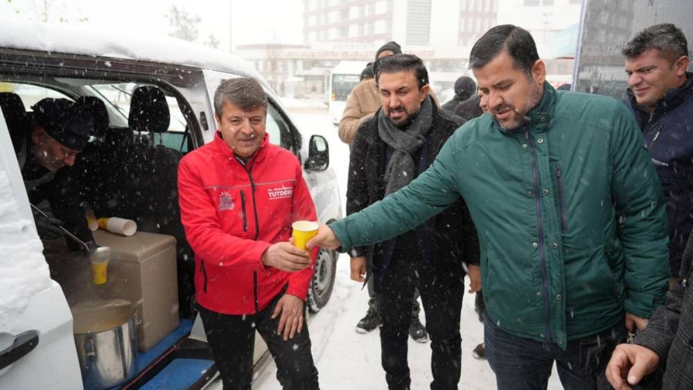 Adıyaman'da yoğun kar yağışıyla birlikte Adıyaman Belediyesi ekipleri sahada çalışmalarını aralıksız sürdürdü. Adıyaman Belediye Başkanı Abdurrahman Tutdere, Eğitim ve Araştırma Hastanesi önündeki duraklarda otobüs bekleyen vatandaşlara sıcak çorba ikram ederek, soğuk havada bekleyen yurttaşlara destek oldu.