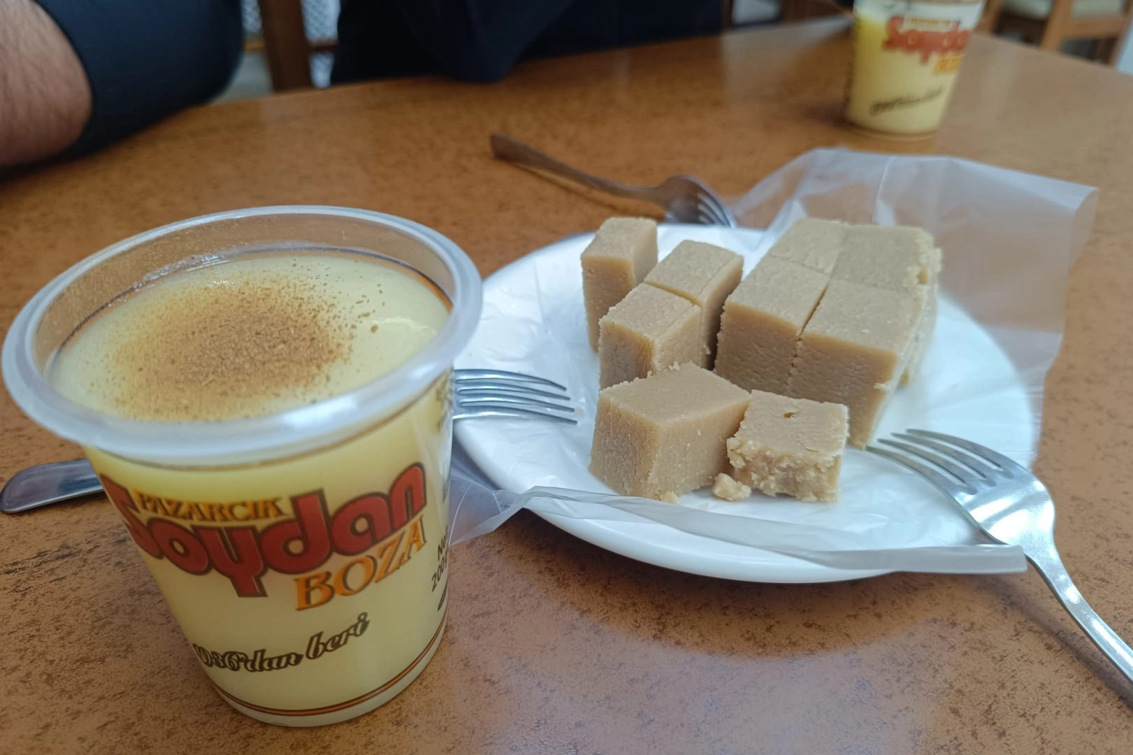 Kış mevsiminin habercisi olarak görülen boza, Pazaryeri’nde soğuk akşamlarda Pazarcık Helvası ve tarçın eşliğinde sofraların vazgeçilmezi olmayı sürdürüyor.