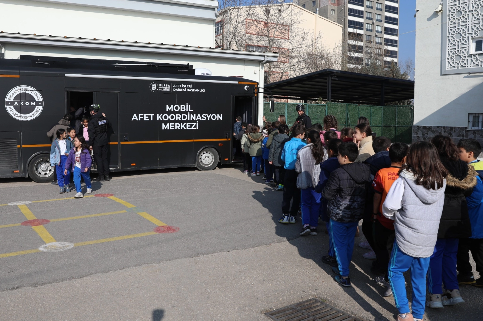 Daha sonra Bursa Büyükşehir Belediyesi’nin Mobil Afet Koordinasyon Aracı’na geçen öğrenciler, çalışmalar hakkında bilgilendirildi.