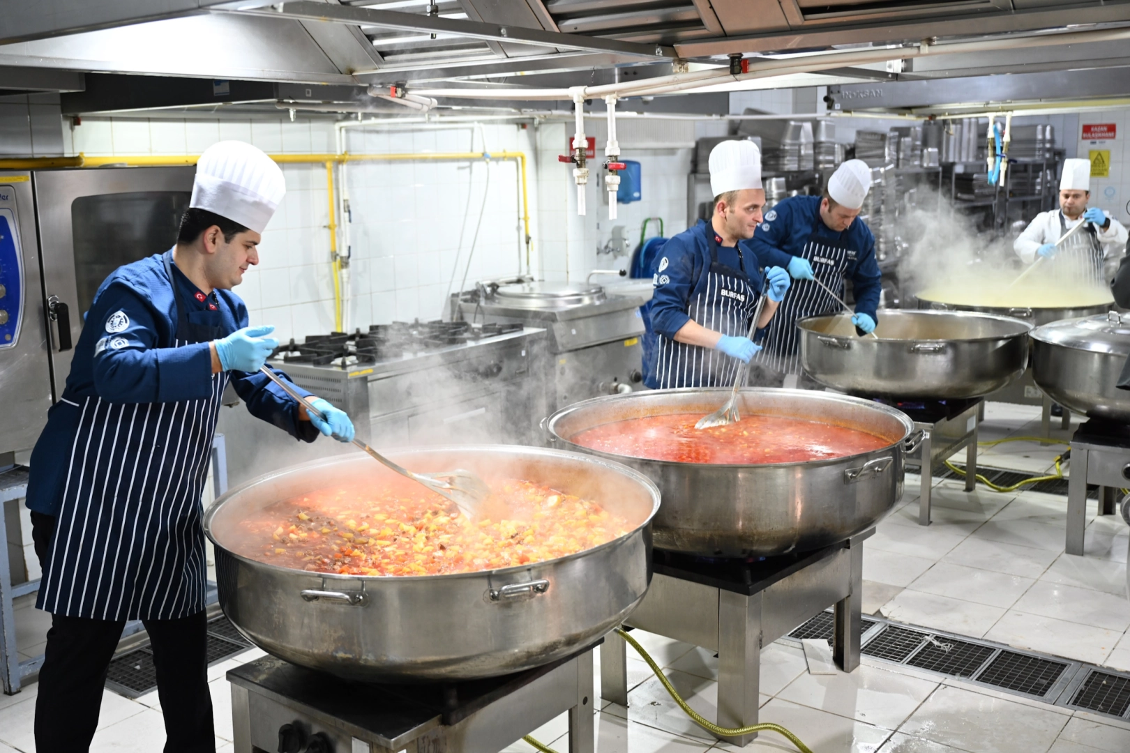 BURSA (İGFA) - Bursa Büyükşehir Belediyesi, dayanışmanın çoğaldığı, paylaşmanın berekete dönüştüğü Ramazan ayında her gün vatandaşları iftar sofralarında buluşturuyor. Birbirinden lezzetli yemekler, BURFAŞ’ın Acemler’de bulunan ana mutfağında usta şefler tarafından özenle hazırlanıyor.
