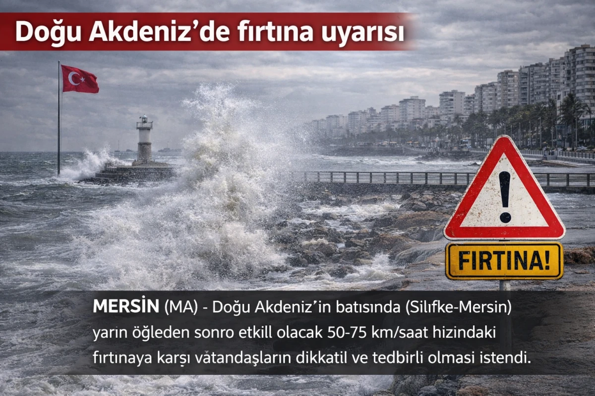 Doğu Akdeniz’in batısında (Silifke-Mersin) yarın öğleden sonra etkili olacak 50-75 km/saat hızındaki fırtınaya karşı vatandaşların dikkatli ve tedbirli olması istendi.
