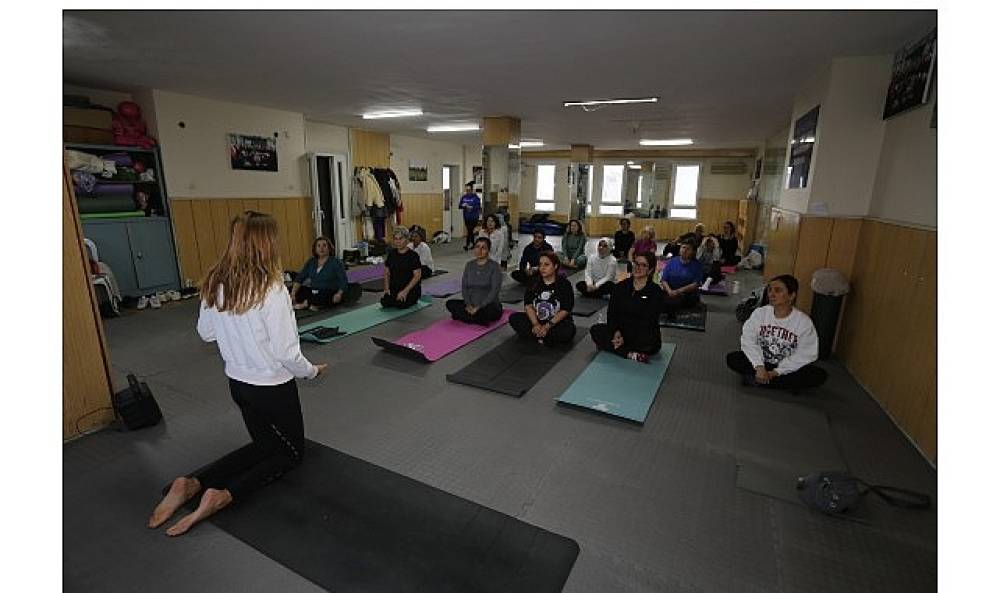 Haftanın ortasında bir araya gelen kadınlar, yoga ve meditasyon çalışmalarıyla stres atma, bedenlerini güçlendirme ve zihinsel olarak rahatlama imkânı buluyor.