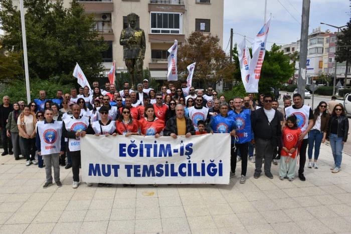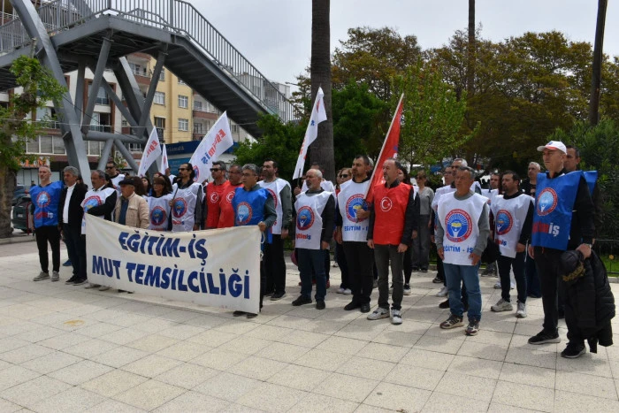 Eğitim-İş Mut Temsilciliği, Atatürk Anıtı önünde yaptığı basın açıklamasında okullarda artan şiddet olaylarına tepki göstererek, güvenlik önlemlerinin acilen artırılmasını istedi.