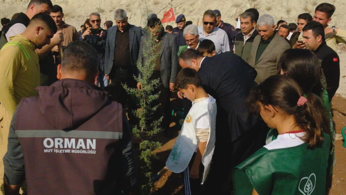 Etkinliğe Mut Kaymakamı Osman Çelikkol, kurum amirleri, öğrenciler ve vatandaşlar katıldı. “Geleceğe Nefes, Dünyaya Nefes” sloganıyla düzenlenen etkinlikte katılımcılar, belirlenen alanlara fidan dikerek doğaya katkıda bulundu.