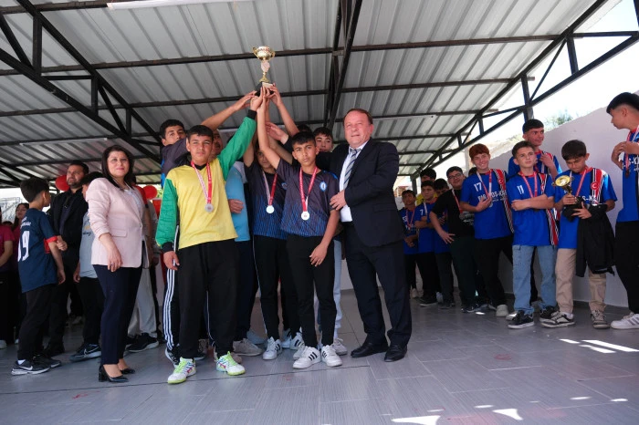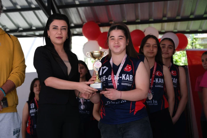 Öte yandan, okullar arası düzenlenen yıldızlar voleybol ve futbol turnuvalarında dereceye giren takımlara ödülleri de program kapsamında verildi. Turnuvada birinci olan takımlara ödüllerini Cumhuriyet Başsavcısı Zuhal Solmaz, ikinci olan takımlara Belediye Başkanı Murat Orhan, üçüncü olan takımlara ise Kaymakam Osman Çelikkol ve eşleri takdim etti.