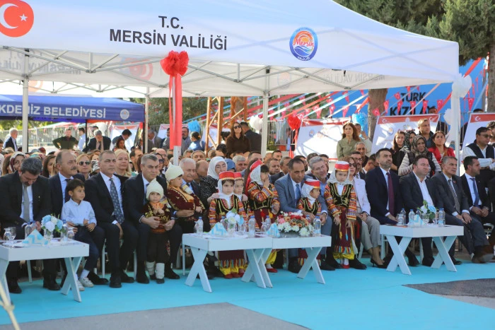 Meydan Mahallesi’nde yapımı tamamlanan anaokulunun açılış töreni, Mersin İl Milli Eğitim Müdürlüğü Maarif Halk Dansları Topluluğu’nun gösterisiyle başladı. Saygı duruşu ve İstiklal Marşı’nın ardından 81 İl 81 Anaokulu Projesi tanıtım filmi izlendi.