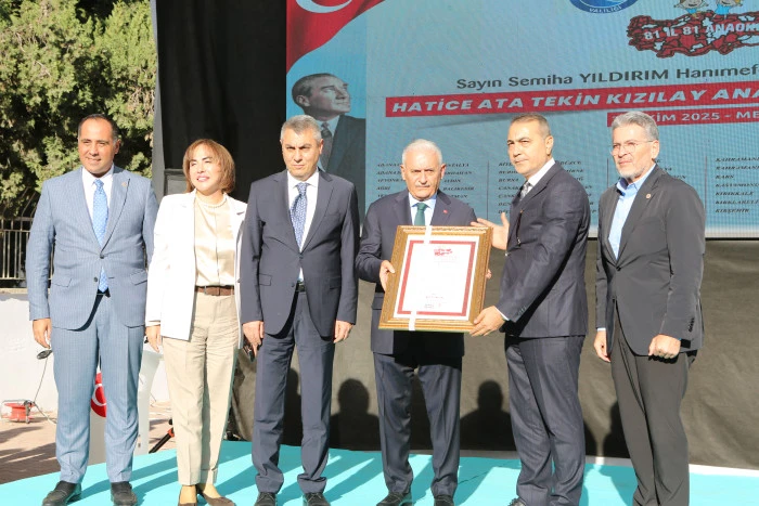 Konuşmaların ardından Binali Yıldırım, Yücel Tekin’e berat takdim etti. Vali Atilla Toros ve eşi Dudu İrem Toros da Yıldırım çifti Binali ve Semiha Yıldırım’a hediye verdi.