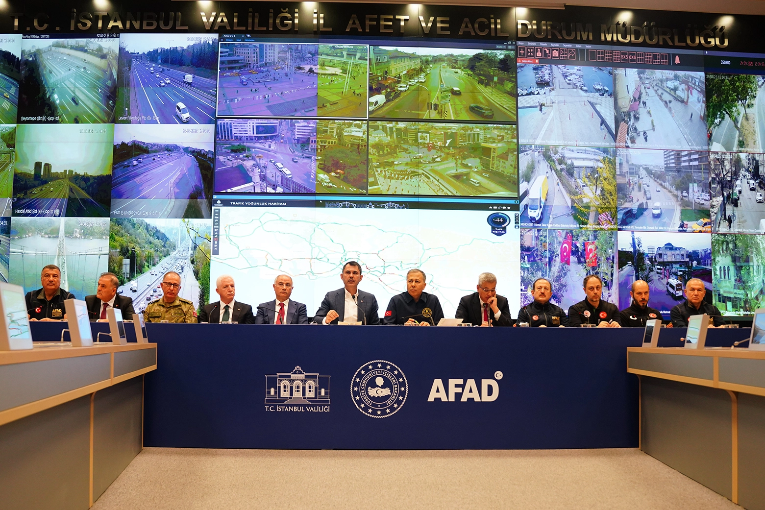 İSTANBUL (İGFA) - Çevre, Şehircilik ve İklim Değişikliği Bakanı Murat Kurum, İçişleri Bakanı Ali Yerlikaya ve Sağlık Bakanı Kemal Memişoğlu, İstanbul Valisi Davut Gül, AK Parti Genel Başkan Vekili Efkan Ala ve İstanbul Büyükşehir Belediye Başkan Vekili Nuri Aslan ile birlikte Afet Koordinasyon Toplantısı’na katıldı. Toplantının ardından AFAD Koordinasyon Merkezi’nde basın açıklaması yaptı.