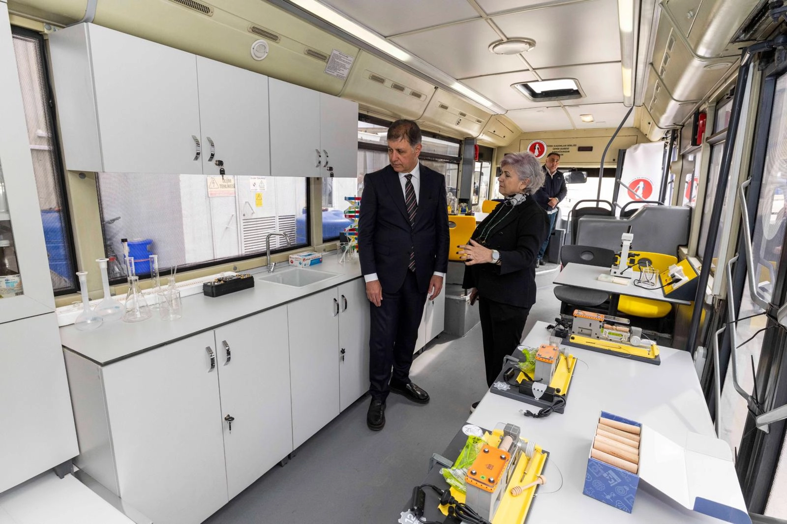 Projenin genel koordinasyonu ise Türk Kadınlar Birliği İzmir Şubesi tarafından yürütülüyor. İzmir Büyükşehir Belediyesi’nin hibe desteğiyle temin edilen otobüs, hayırsever bağışlarının katkısıyla mobil bir bilim laboratuvarına dönüştürüldü. Otobüsün içinde fizik ve kimya deneylerinin yapılabileceği laboratuvar ekipmanlarının yanı sıra çocukların keşfetme, üretme ve yaratıcı düşünme becerilerini geliştirmeye yönelik eğitim setleri bulunuyor. Araçta ayrıca, bilim, teknoloji, mühendislik ve matematik alanlarının birlikte ele alındığı STEM temelli öğrenme yaklaşımına uygun materyaller yer alıyor. Bu kapsamda kullanılan BenMaker setleri, çocukların deney yaparak öğrenmelerini, tasarım ve üretim süreçlerine aktif biçimde katılmalarını sağlayan uygulamalı eğitim araçlarından oluşuyor.