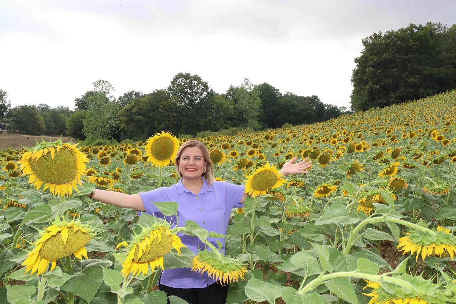 KOCAELİ (İGFA) - İzmit Belediye Başkanı Fatma Kaplan Hürriyet, Belediye Başkan Yardımcısı Celal Hülür ve Kırsal Hizmetler Müdürü İsmet Kunttaş ile birlikte, belediyeye ait Yenice Köyü’ndeki ayçiçek tarlasından halka seslendi.