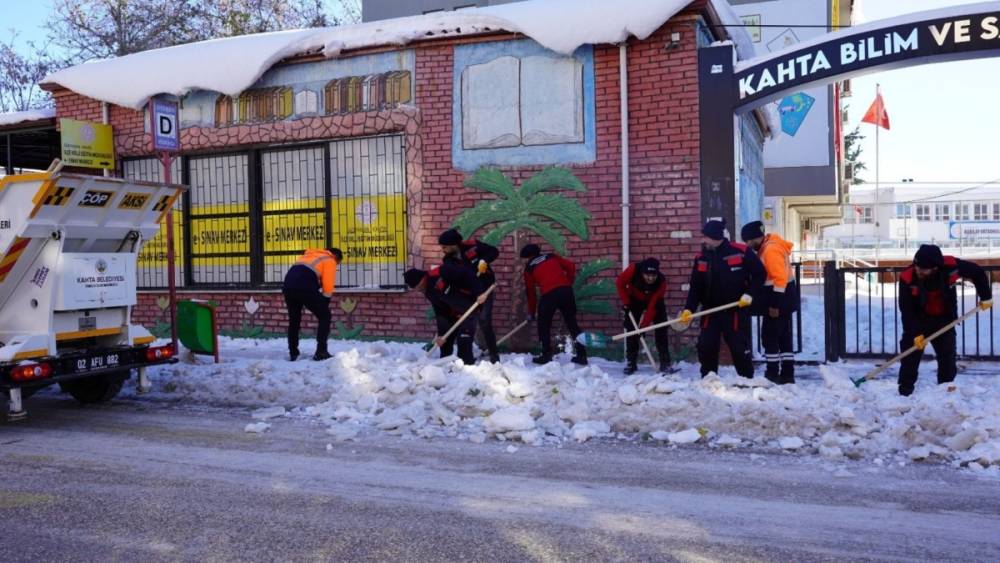 Kahta Belediyesi tarafından yürütülen çalışmalarda, başta ana arterler olmak üzere mahalle yolları, cadde ve sokaklar, kaldırımlar ile kamuya açık alanlarda kar küreme ve temizlik faaliyetleri titizlikle gerçekleştiriliyor. Ekipler, ulaşım güvenliğinin sağlanması için özellikle yoğun kullanılan güzergâhlarda çalışmalarını öncelikli olarak sürdürüyor.