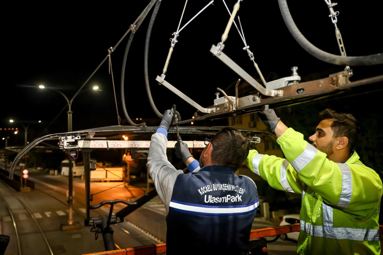 Günlük ortalama 55 bin yolcu taşıyan tramvayın günlük bakımı için gece saatlerinde sahaya inen UlaşımPark ekibi, güvenli ulaşım için rayların bakımını aksatmıyor. Kocaeli’nin demir ağları olan tramvayda gündüz yolcular taşınırken gece saatlerinde ise rayların bakımı yapılıyor. Yolculuğun olmadığı saatlerde bakımı yapılan raylarla birlikte hem hattın güvenliği hem de yolculuk konforu en üst seviyede tutuluyor.