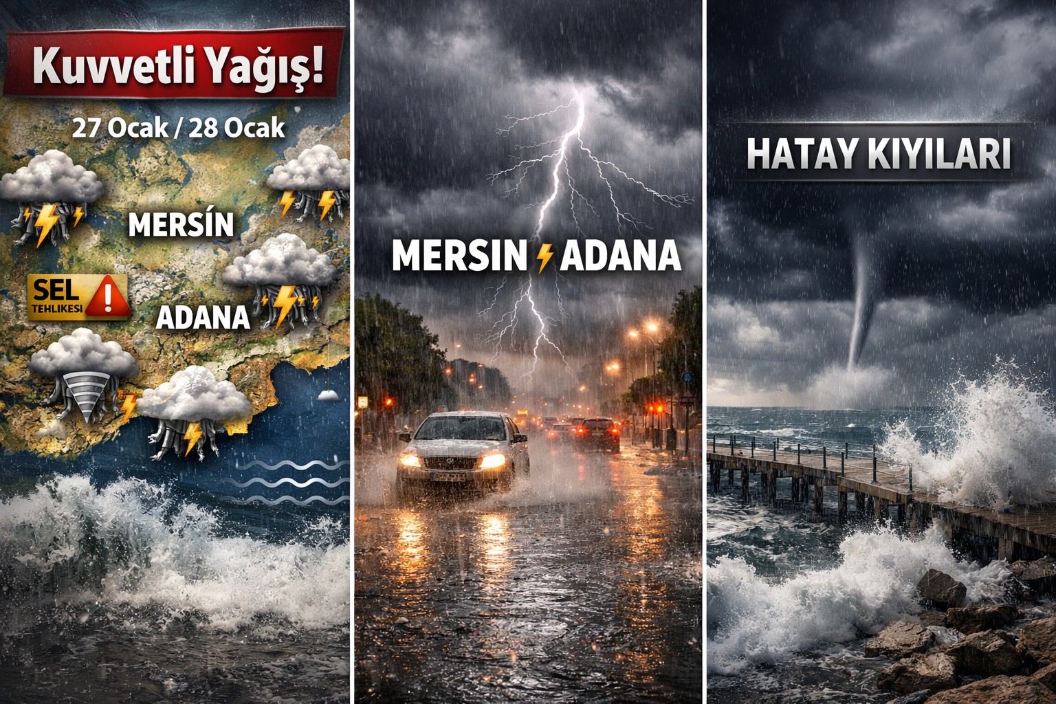 MERSİN (MA) – Meteorolojik değerlendirmelere göre; Doğu Akdeniz kıyılarında beklenen sağanak ve gök gürültülü sağanak yağışların, 27.01.2026 Salı günü öğle saatlerinden itibaren Mersin çevrelerinde, akşam saatlerinden itibaren Adana çevrelerinde ve gece saatlerinde (28.01.2026 Çarşamba) Hatay kıyılarında etkili olması bekleniyor.