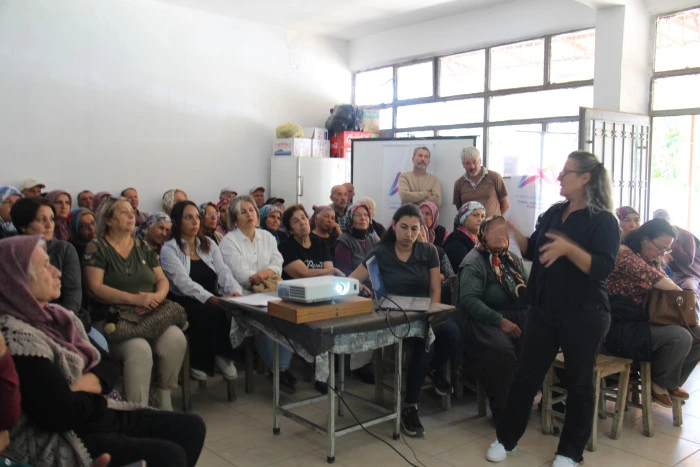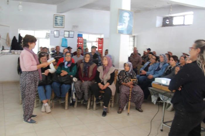 MERSİN - (MA) Mersin Büyükşehir Belediyesi Tarımsal Hizmetler Dairesi Başkanlığı tarafından hazırlanan eğitim programı kapsamında, Mut CHP Kadın Kolları Başkanlığı iş birliğiyle Çukurbağ Mahallesi’nde domates yetiştiriciliği yapan çiftçilere yönelik bilgilendirme toplantısı düzenlendi.