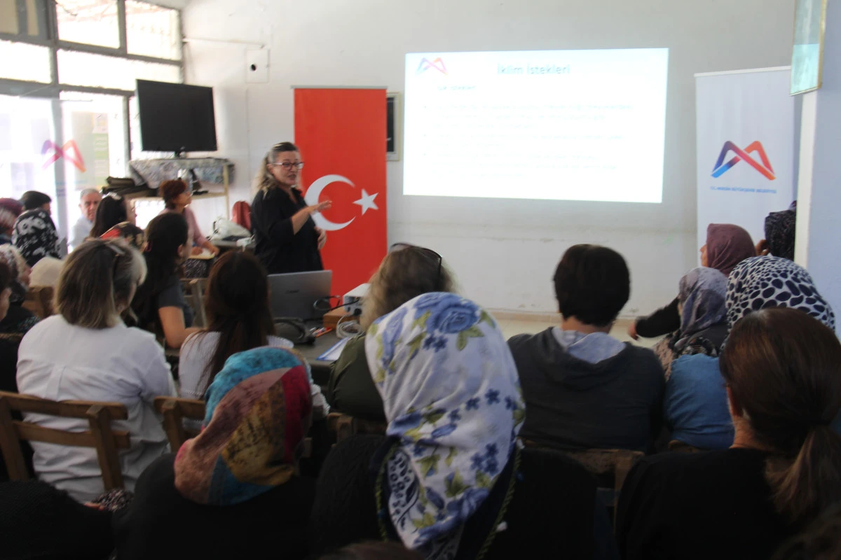 Bitki yetiştirme ve koruma konularında yapılan sunumu, Ziraat Yüksek Mühendisi Aysun Seçkin gerçekleştirdi. Seçkin, üreticilere toprak hazırlığı, fide seçimi, hastalık ve zararlılarla mücadele yöntemleri hakkında detaylı bilgi verdi.