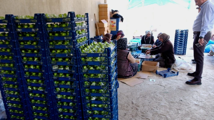 Örtü altı seralarda hasadı yapılan yeşil can eriği, paketlenerek iç piyasa ve ihracat pazarlarına sunuluyor.