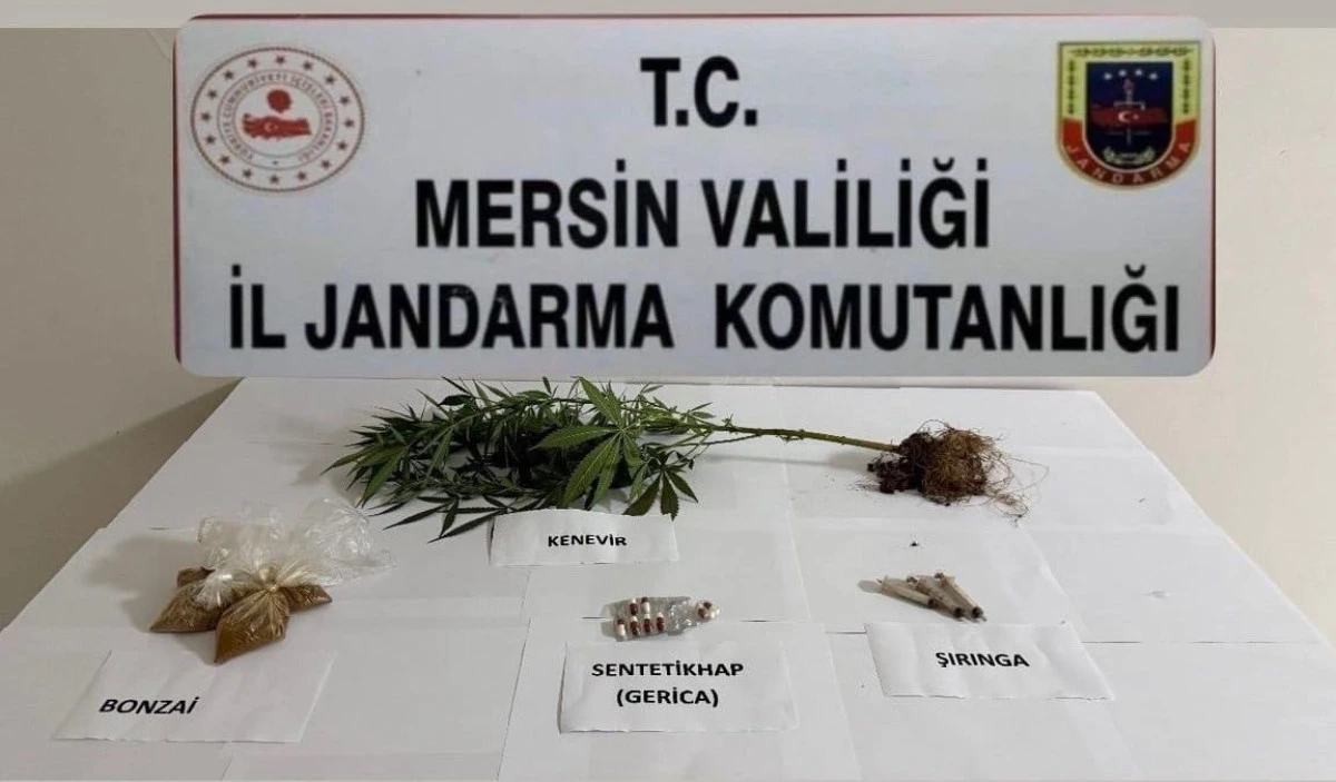 Mersin'de Jandarma ekipleri tarafından düzenlenen, Silifke, Mut, Tarsus, Mezitli ve Erdemli ilçelerinde yaptığı araştırmalar sonucunda jandarma ekipleri (8) şahsın uyuşturucu madde imal ve ticareti yaptığını tespit etti. Jandarma düzenlediği operasyonlar ile takip ettiği şüpheli şahısları yakalayarak gözaltına aldı. Gözaltına alınan şüphelilerin ikameti ile araçlarında arama yapan Jandarma (43) kök kenevir, bitkisi, (5.757) gr. bonzai maddesi, (13) adet gerica hap, (3) adet şırınga, (61) gr. metamfetamin maddesi, (35) gram kubar esrar, (5) adet uyuşturucu içme aparatına el koydu. Yakalanan şüpheliler işlemleri tamamlanmak üzere Jandarma Komutanlığına götürüldü.