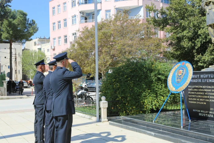 MERSİN (MA) - Mersin’in Mut ilçesinde, Türk Polis Teşkilatı'nın 181. kuruluş yıl dönümü ve 10 Nisan Polis Haftası etkinlikleri kapsamında çelenk sunma töreni düzenlendi.