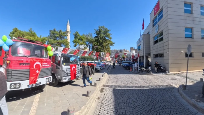 Mersin’in Mut İlçesi’nde belediye bünyesine kazandırılan 11 araç, düzenlenen törenle hizmete alındı. Açılışta kurban kesilip dualar edilirken, vatandaşlara Cumhuriyet Meydanı’nda yemek ikramı yapıldı.