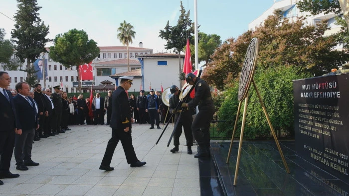 Mut İlçe Kaymakamlığı tarafından düzenlenen 10 Kasım Atatürk’ü Anma Programı, Atatürk Anıtı’na çelenk sunma töreniyle başladı. Törende ilçe protokolü, öğrenciler ve vatandaşlar Gazi Mustafa Kemal Atatürk’ü saygı ve özlemle andı.