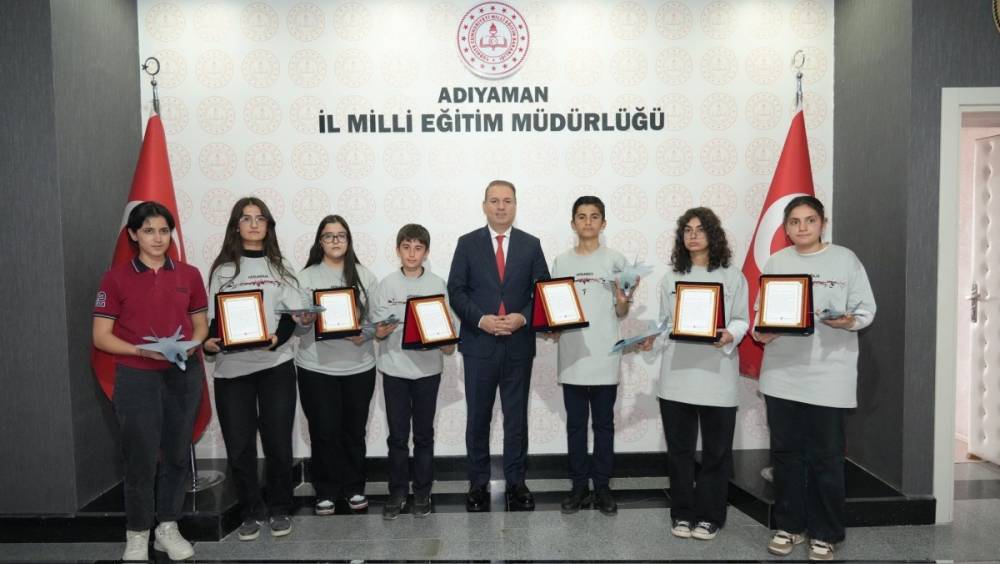 ADIYAMAN (PERRE) - Sibel TURAN-Millî Eğitim Bakanlığı ile Türk Silahlı Kuvvetlerini Güçlendirme Vakfı iş birliğinde düzenlenen "Savunmadan Sanata: Genç Tasarımlar - Özel Gün Kartı ve Tişört Tasarımı Yarışması" kapsamında dereceye giren öğrencilere Adıyaman İl Milli Eğitim Müdürlüğünde Müdür Ali Tosun ile bir araya geldi.