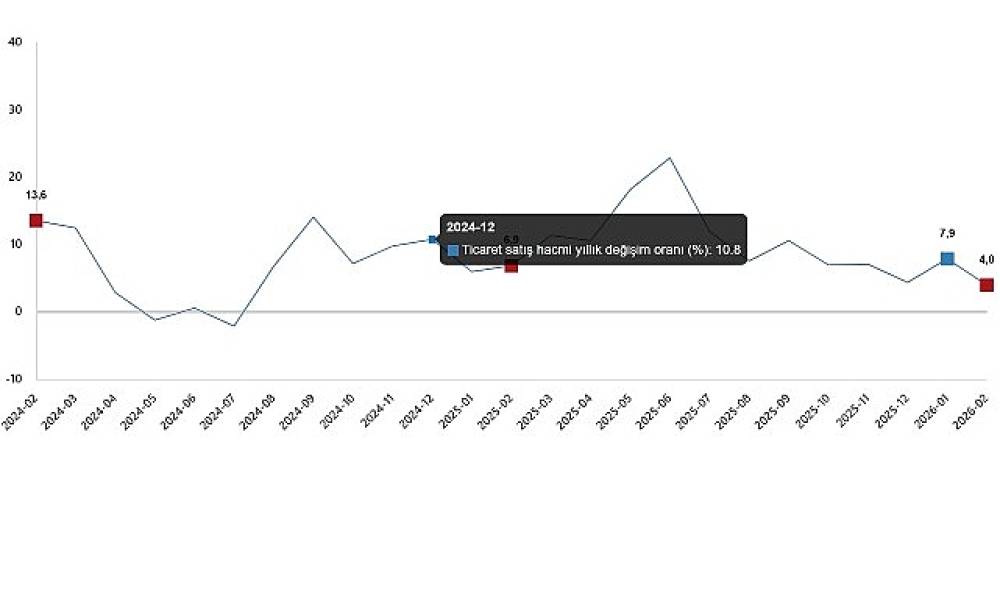 Ticaret satış hacmi yıllık değişim oranı (%), Şubat 2026
