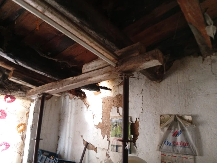 Mut’un Hacıahmetli Mahallesi’nde İbrahim Tekkol’a ait evde hasar oluştu. Bazı taş evlerin çatıları çökerken, kullanılmayan eski yapılarda ise kısmi yıkımlar meydana geldi.
