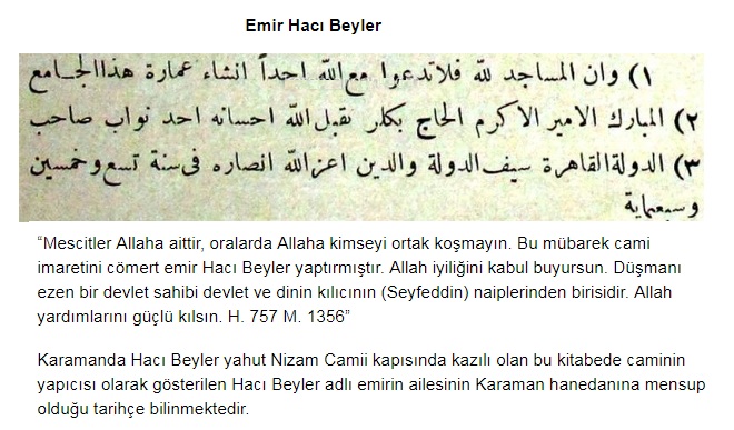 3- Prof. Dr. Ernst Diez, M. Mesut Koman ve Dr. Oktay Aslanapa, 1950, “Karaman Devri Sanatı” İstanbul, sayfa 44, 45, 48, 49 4- İ. Hakkı Konyalı, 1967, “Abideleri ve Kitabeleri ile Karaman Tarihi”, sayfa 229-254,